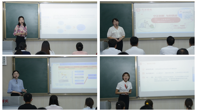 在校級(jí)決賽環(huán)節(jié),8位選手分別進(jìn)行了5分鐘的說(shuō)課和15分鐘的現(xiàn)場(chǎng)教學(xué)展示。參賽教師們依據(jù)課程特點(diǎn),深入挖掘課程蘊(yùn)含的思想政治教育資源元素,有機(jī)融入家國(guó)情懷、法治意識(shí)、社會(huì)責(zé)任、人文精神、仁愛(ài)之心等思政元素,展示了各具特色的教學(xué)設(shè)計(jì)和教學(xué)風(fēng)采,生動(dòng)體現(xiàn)了知識(shí)傳授與價(jià)值引領(lǐng)相統(tǒng)一、教書(shū)與育人相統(tǒng)一、言傳和身教相統(tǒng)一、潛心問(wèn)道和關(guān)注社會(huì)相統(tǒng)一、學(xué)術(shù)自由和學(xué)術(shù)規(guī)范相統(tǒng)一的特點(diǎn)。最終電信學(xué)院教師李亞文榮獲“課程思政教學(xué)標(biāo)兵”榮譽(yù)稱(chēng)號(hào),人文學(xué)院教師劉玉婷、健康學(xué)院教師張文平榮獲“課程思政教學(xué)骨干”榮譽(yù)稱(chēng)號(hào),健康學(xué)院教師黃笛、人文學(xué)院教師馮麗君榮獲“課程思政教學(xué)能手”榮譽(yù)稱(chēng)號(hào)。