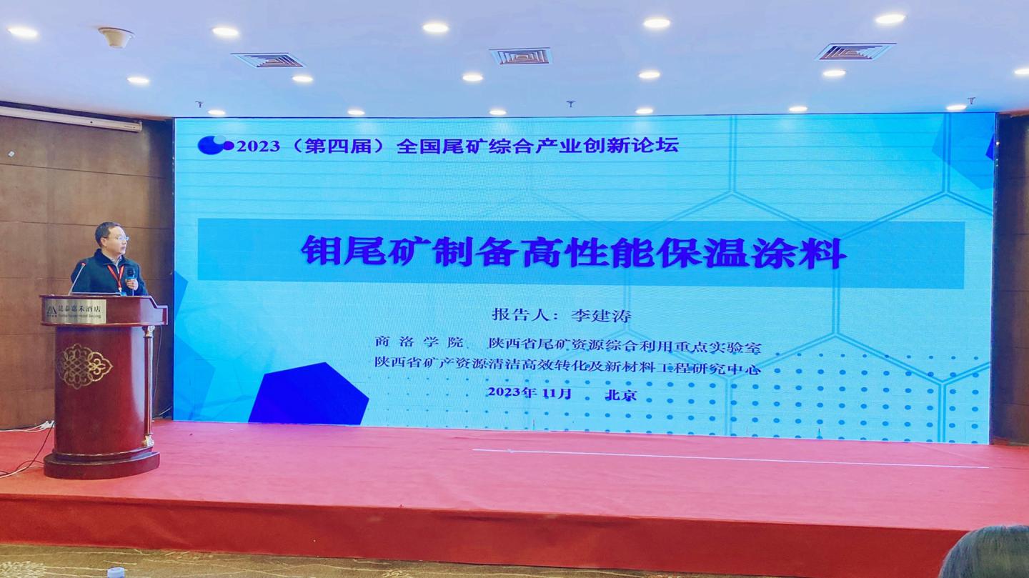 我校李建濤博士在大會上作了題為“鉬尾礦制備高性能保溫涂料”的學術報告,介紹了我校扎根秦嶺,變“尾”為寶,守護綠水青山,服務區域發展的辦學特色。分享了鉬尾礦制備保溫真石漆、復合保溫涂料、二氧化硅氣凝膠相關關鍵技術。