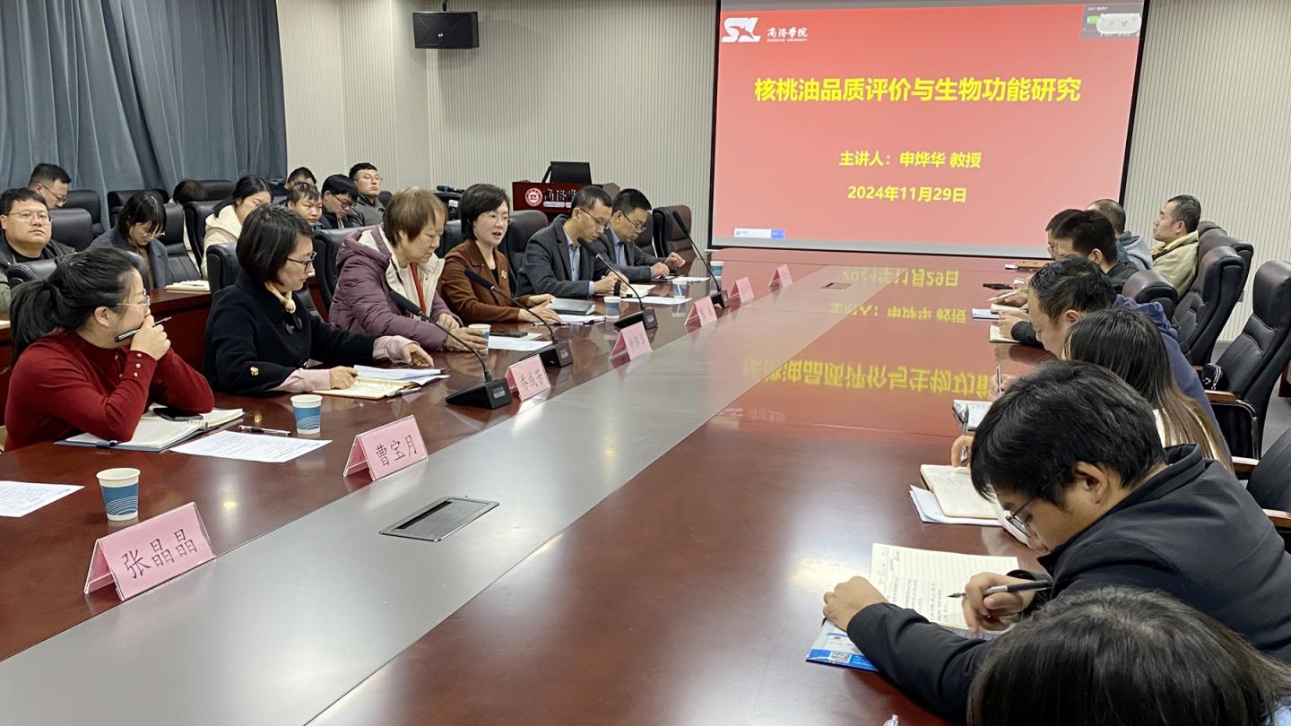 在學術交流環節,師生們就核桃油研究中的技術難點、產業應用前景等問題與申教授展開深入交流。申教授耐心解答,其淵博的學識與嚴謹的治學態度給師生們留下了深刻印象。