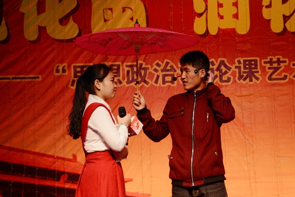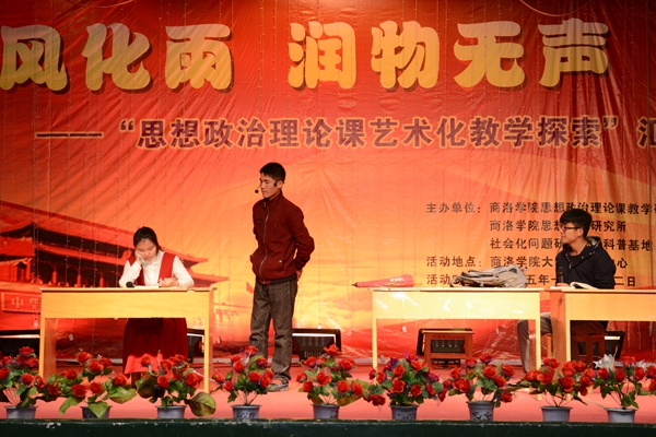 長期以來,圍繞如何不斷增強思政課的實效性,不斷改善思政課的課堂教學效果,不斷創新思政課的實踐教學模式,思政部全體教師認真貫徹落實《中共中央宣傳部、教育部關于進一步加強和改進高等學校思想政治理論課的意見》的有關精神,不斷加強教學方法研究,不斷優化教學手段,為把思想政治理論課建設成為大學生真心喜愛、終身受益的課程而不懈努力,進行了全方位的探索。本次“春風化雨潤物無聲——思想政治理論課藝術化教學探索”匯報演出以“思想政治理論課生命課堂實踐體系構建研究”、“社會主義核心價值觀視域下高校思想政治理論課實踐教學模式的創新與實踐研究”、“雙向案例教學法在高?!颊n’中的應用”等三個陜西省教育科學規劃課題為依托,是對我校思政課教學方法改革探索的一次有益嘗試。