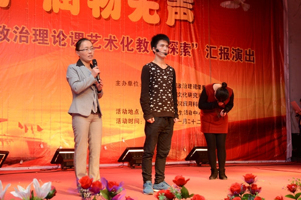 一位參加演出的同學講,這是他第一次參加大型晚會的演出,通過參加活動他的團隊協作意識得以提高,組織管理能力得以鍛煉。他非常喜歡這樣的教學方法,這種教學方法讓思想政治理論課的教材內容“活”了起來,貼近大學生實際解答大學生困惑。這是他受益匪淺、終生難忘的一個夜晚。