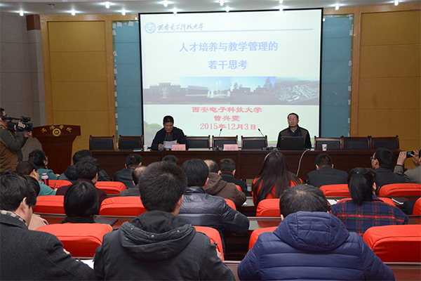 12月3日,我校舉行教學(xué)管理干部培訓(xùn)會(huì),教務(wù)處邀請(qǐng)西安電子科技大學(xué)曾興雯教授、西北大學(xué)高勝利教授來(lái)校作了培訓(xùn)報(bào)告。培訓(xùn)會(huì)由校黨委副書(shū)記、副校長(zhǎng)范新會(huì)主持。教學(xué)評(píng)估中心、教務(wù)處全體人員,各二級(jí)教學(xué)單位負(fù)責(zé)人、教學(xué)秘書(shū)、系(部)主任及實(shí)驗(yàn)(實(shí)訓(xùn))室主任聆聽(tīng)了報(bào)告。