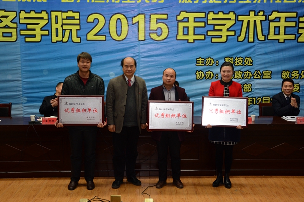 大會對榮獲2015年度陜西高校科學技術獎的《丹江流域水土保持生態(tài)修復模式研究》課題,《魯迅小說的懺悔敘事》等49篇優(yōu)秀論文,經(jīng)濟與管理學院等3個優(yōu)秀組織單位進行了表彰獎勵。校領導劉建林、范新會、王思懷、魏書堂、彭虎軍分別為受表彰的集體和個人頒獎。副校長劉寶盈主持會議開幕式和閉幕式。