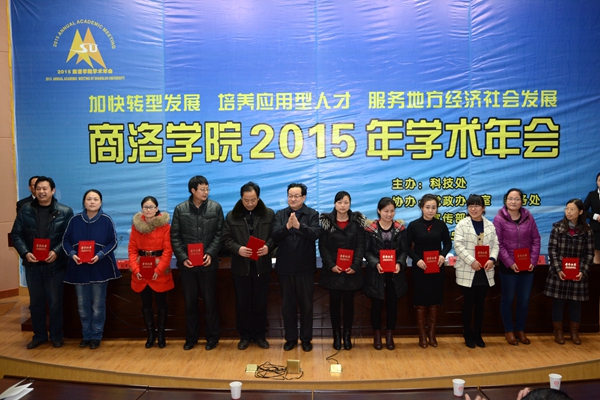12月26日,我校2015年學術年會在圖書館報告廳隆重召開。大會以“加快轉型發(fā)展培養(yǎng)應用型人才 服務地方經(jīng)濟社會發(fā)展”為主題。進化古生物學家、中科院院士、西北大學教授舒德干,西北大學、西安石油大學教授、博士生導師、西安石油大學副校長李華,商洛市科協(xié)主席閆彩芹,校領導劉建林、范新會、王思懷、魏書堂、彭虎軍、劉寶盈出席年會開幕式。大會舉辦了專題報告,分自然科學和人文科學兩個會場進行了學術交流,對我校2015年度省教育廳科研獲獎成果、學術年會優(yōu)秀論文及組織單位進行了表彰獎勵。