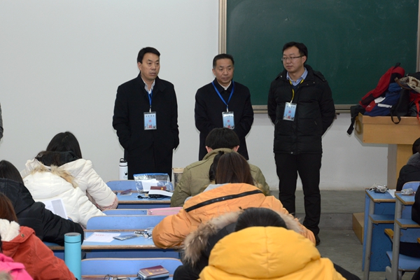 為進一步嚴肅考風考紀,加強對考務工作的管理,1月5日,校領導劉建林、范新會、王思懷、魏書堂、彭虎軍、劉寶盈分頭深入期末考試考場,視察期末考試工作。