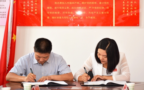 范新會與李傳偉分別代表商洛學院與丹鳳縣人民政府為實踐教學基地揭牌,張利華代表竹林關鎮接牌。范新會與李娜分別代表商洛學院與竹林關鎮簽訂實踐教學基地協議。