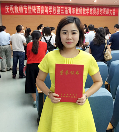 在埋頭鉆研業務的同時,郭杰老師還積極參加各種教學競賽,把它作為提高自身業務水平的磨礪器。相繼取得了校級“青年教師教學技能競賽”、教師微課教學比賽的第一名;陜西省2015年高校教師微課教學比賽三等獎;在剛剛落幕的“陜西省高校第三屆青年教師教學技能競賽”中又取得了一等獎的好成績。