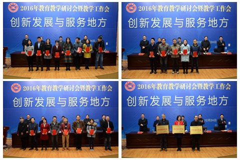 大會(huì)對(duì)我校2016年度優(yōu)秀教案及優(yōu)秀電子課件、教育實(shí)習(xí)優(yōu)秀指導(dǎo)教師和優(yōu)秀實(shí)習(xí)生、教育教學(xué)研討會(huì)優(yōu)秀論文及優(yōu)秀組織單位、青年教師教學(xué)技能競(jìng)賽優(yōu)勝者、校級(jí)以上本科教學(xué)工程項(xiàng)目及教學(xué)名師進(jìn)行了表彰。副校長(zhǎng)魏書(shū)堂宣讀了表彰決定。在熱烈的掌聲中,出席大會(huì)的校領(lǐng)導(dǎo)為受表彰的集體和個(gè)人代表頒發(fā)了獲獎(jiǎng)證書(shū)。陜西省第十屆教學(xué)名師、化材學(xué)院院長(zhǎng)周春生,2016年青年教師教學(xué)技能大賽一等獎(jiǎng)獲得者李亞文分別作了發(fā)言。