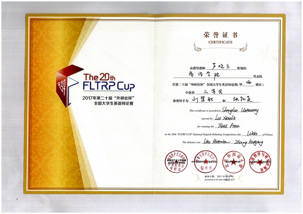 4月28日至30日,第二十屆“外研社杯”全國大學(xué)生英語辯論賽華西賽區(qū)決賽在四川外國語大學(xué)舉行。我校語言文化傳播學(xué)院2014級(jí)英語專業(yè)學(xué)生劉慧敏、2013級(jí)英語專業(yè)學(xué)生張凱英榮獲三等獎(jiǎng)。通過參賽,選手們既開闊了視野,增長(zhǎng)了知識(shí),提高了英語口語能力,又鍛煉了思維能力和表達(dá)能力。
