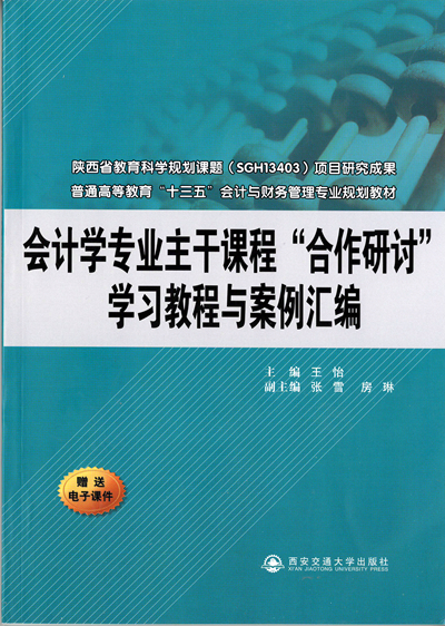 由我校經濟管理學院教師王怡、張雪、房琳主編的教材《會計學專業主干課程“合作研討”學習教程與案例匯編》2017年6月由西安交通大學出版社出版,并被列入普通高等教育“十三五”會計與財務管理專業規劃教材。