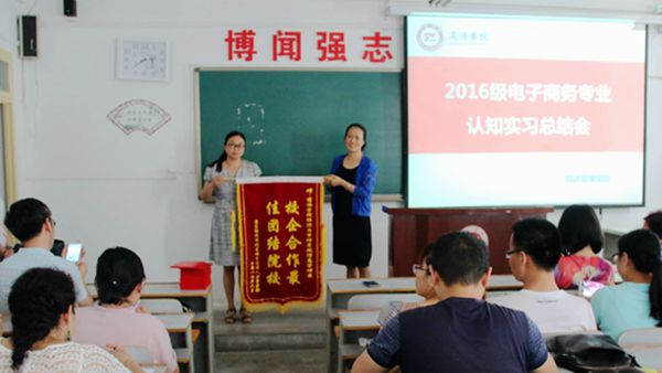 為了使人才培養(yǎng)與社會需求、行業(yè)前沿接軌,加強(qiáng)實(shí)踐教學(xué)環(huán)節(jié)的應(yīng)用性和創(chuàng)新性,我校經(jīng)管學(xué)院電子商務(wù)專業(yè)師生于6月8日至22日赴京東商城東盈物流園區(qū)開展專業(yè)認(rèn)知實(shí)習(xí),負(fù)責(zé)京東倉庫的分揀、包裝、審核等環(huán)節(jié)的工作。由于我校師生在實(shí)習(xí)中表現(xiàn)出色,“優(yōu)秀實(shí)習(xí)生”的獲獎比例在京東合作院校中排名第二,7月4日,京東商城西北分公司人力資源部經(jīng)理李琦專程來我校贈予“校企合作最佳團(tuán)結(jié)院校”錦旗。