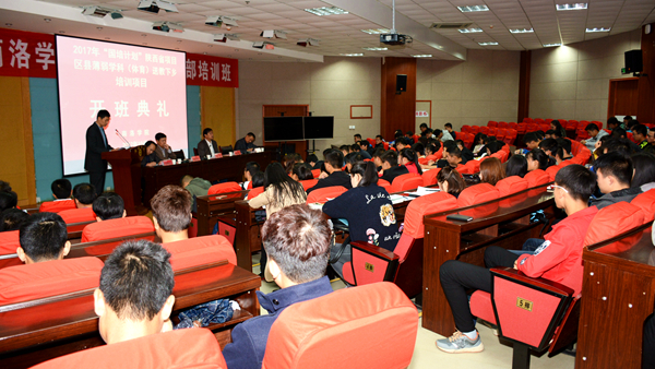我校體育教學研究部副主任黃顯忠對培訓班的課程設置、培訓形式、培訓專家團隊等向學員們作了詳細的說明。參訓學員賈雷雷代表培訓班學員作了表態發言。