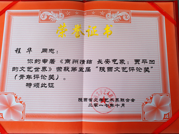 10月26日,在第五屆陜西省文藝評論頒獎會上,我校人文學院程華教授專著《商州情結 長安氣象:賈平凹的文藝世界》榮獲“陜西文藝評論獎”。