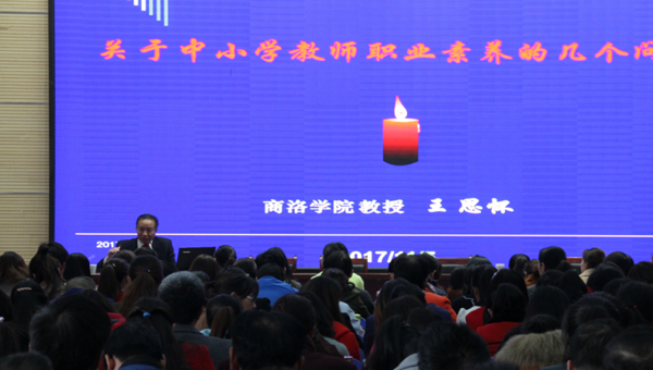 開(kāi)班典禮結(jié)束后,我校紀(jì)委書(shū)記王思懷以《關(guān)于中小學(xué)教師職業(yè)素養(yǎng)的幾個(gè)問(wèn)題》為題,從做教師的幸福感進(jìn)入最好歷史時(shí)期、規(guī)范中小學(xué)教師職業(yè)素養(yǎng)的法規(guī)依據(jù)、中小學(xué)生喜歡的好教師形象、中小學(xué)教師良好素養(yǎng)的自我錘煉四個(gè)方面為參訓(xùn)學(xué)員做了一場(chǎng)精彩的報(bào)告。報(bào)告中,王思懷通過(guò)鮮活的事例講述了現(xiàn)階段人們對(duì)知識(shí)的尊重、對(duì)文化的推崇,論證了從事教師職業(yè)的幸福感,鼓勵(lì)參訓(xùn)教師以積極向上的狀態(tài)立足崗位做貢獻(xiàn)。通過(guò)對(duì)一些典型的違反教師職業(yè)道德案例的剖析,告誡參訓(xùn)教師要嚴(yán)守道德底線(xiàn),加強(qiáng)自身修養(yǎng),做“有理想信念、有道德情操、有扎實(shí)學(xué)識(shí)、有仁愛(ài)之心”的四有好老師。他用風(fēng)趣幽默的語(yǔ)言從外在形象和內(nèi)在特質(zhì)等方面分析了中小學(xué)生喜歡的好教師形象,并詳細(xì)介紹了提高中小學(xué)教師綜合素養(yǎng)的途徑與方法。