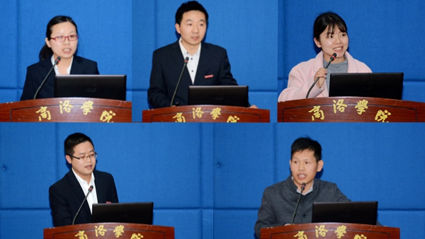 馬克思主義學院劉玲霞、化材學院劉彥峰、經管學院李泓波、生物學院梁旭華、人文學院張文諾5位教師代表在大會上就教學實踐的體會進行了交流發言。