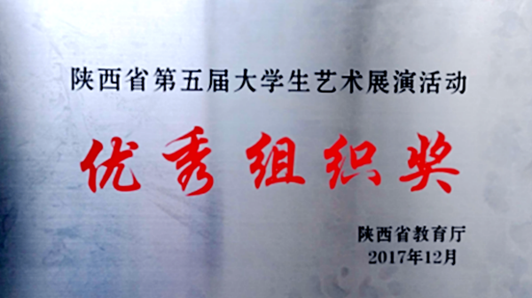近日,陜西省教育廳下發(fā)了《關(guān)于公布全省第五屆大學(xué)生藝術(shù)展演活動評選結(jié)果的通知》,我校在本屆大學(xué)生藝術(shù)展演中取得優(yōu)異成績,獲得4個二等獎、3個三等獎,是歷屆藝術(shù)展演中獲獎項目和作品數(shù)量最多的一屆,同時我校榮獲優(yōu)秀組織獎。