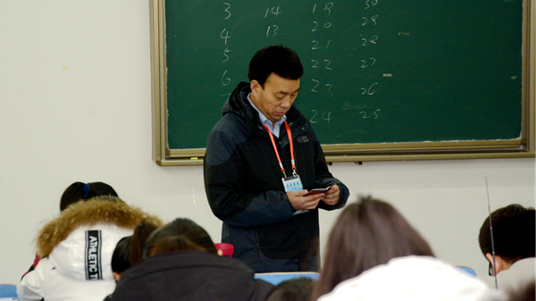 1月2日是本學期期末考試的第一天,1月2日至4日,校領導龍治剛、范新會、王思懷、魏書堂、彭虎軍、劉寶盈、劉勇在教務處相關負責人的陪同下深入期末考試考場,視察期末考試工作。