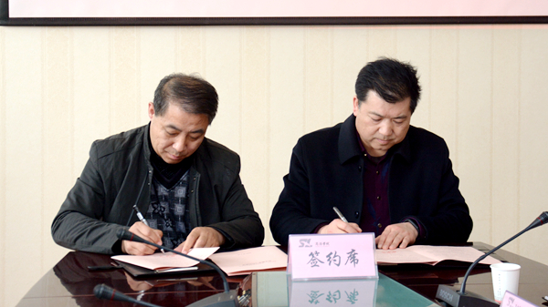 科技處處長王新軍代表學校與丹鳳縣科教體局簽訂了《產學研政合作協議》《產學研技術合作框架協議》。