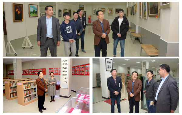 在相關(guān)部門負(fù)責(zé)人的陪同下,張雄一行還參觀了我校特色展室和藝術(shù)展廳。