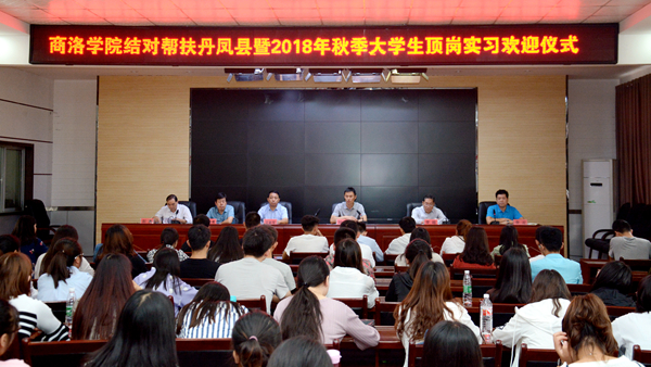 9月12日,我校結對幫扶丹鳳縣暨2018年秋季大學生頂崗實習歡迎儀式在丹鳳縣科技和教育體育局舉行。我校副校長劉勇、丹鳳縣科教體局黨委書記李宏出席歡迎儀式。我校教務處、科技處、繼續教育學院負責人,丹鳳縣科教體局機關紀委書記,丹鳳縣相關中小學校長和頂崗實習大學生參加儀式,儀式由李宏主持。