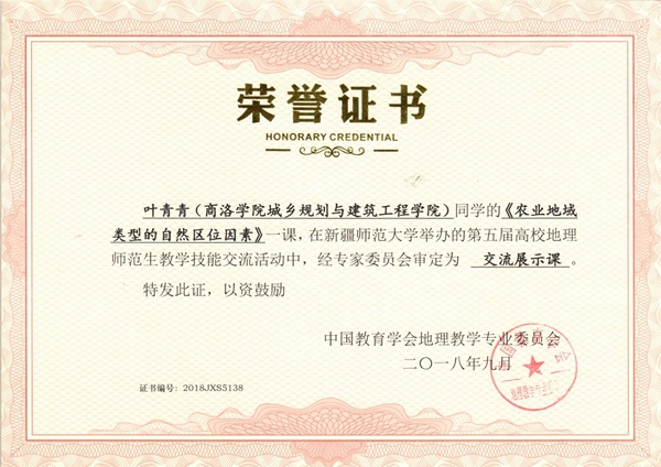 9月28—30日,由中國(guó)教育學(xué)會(huì)地理教學(xué)專業(yè)委員會(huì)主辦,新疆師范大學(xué)地理科學(xué)與旅游學(xué)院、華東師范大學(xué)地理科學(xué)學(xué)院聯(lián)合承辦的“2018年地理師范生教學(xué)技能大賽”在新疆維吾爾自治區(qū)烏魯木齊市成功舉辦。來(lái)自華東師范大學(xué)、東北師范大學(xué)、華中師范大學(xué)、南京師范大學(xué)、陜西師范大學(xué)等70多所高校地理科學(xué)(師范)專業(yè)的140余名選手參加了大賽。我校選派參賽的城鄉(xiāng)規(guī)劃與建筑工程學(xué)院地理科學(xué)專業(yè)2015級(jí)學(xué)生葉青青、李磊講授課程均被審定為交流展示課(三等獎(jiǎng))。