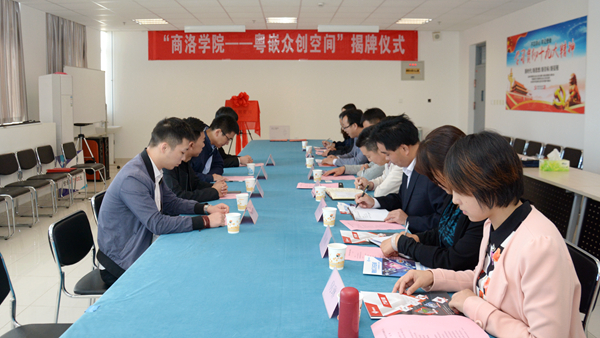 劉勇代表學(xué)校與王樂忠共同為眾創(chuàng)空間揭牌,并為大家介紹了我校的基本情況和我校校企合作工作開展情況。他指出,商洛學(xué)院是一所地方應(yīng)用型本科院校,產(chǎn)教融合是應(yīng)用型發(fā)展的必由之路,學(xué)校高度重視結(jié)合專業(yè)特色優(yōu)勢(shì)與粵嵌科技開展的各項(xiàng)合作,希望電信學(xué)院和經(jīng)管學(xué)院以校企共建眾創(chuàng)空間為平臺(tái),認(rèn)真謀劃、積極實(shí)踐,在雙師型教師培養(yǎng)、理論和實(shí)踐課程體系改革、實(shí)習(xí)實(shí)訓(xùn)、創(chuàng)新創(chuàng)業(yè)競(jìng)賽指導(dǎo)等方面積極開展工作,著力探索產(chǎn)教融合人才培養(yǎng)新模式,努力提高應(yīng)用型人才培養(yǎng)質(zhì)量。