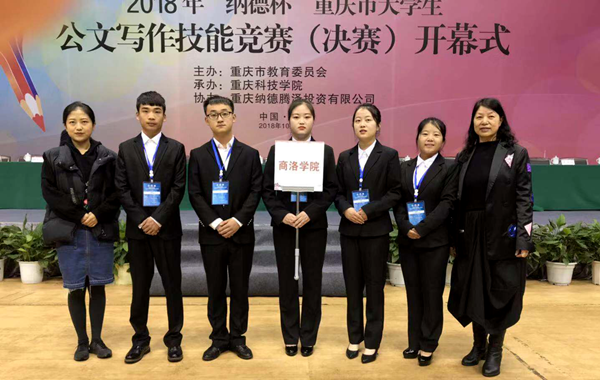 近日,由重慶市教委主辦的第三屆“納德杯”重慶市大學生公文寫作技能競賽決賽落下帷幕。由我校人文學院2016級學生朱森林、劉彤、李玉璠、王玉宇、羅富升組成的參賽隊榮獲團體二等獎,朱森林同學榮獲個人單項二等獎。