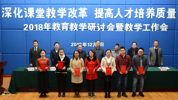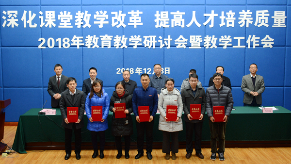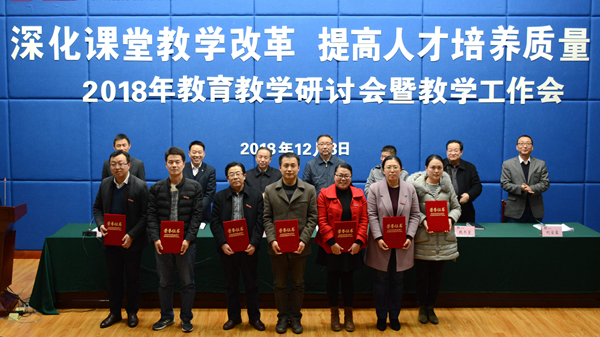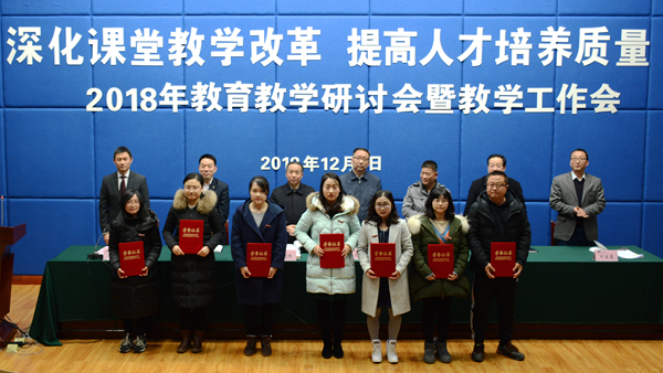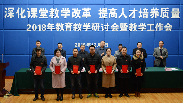 大會對我校2018年度優秀教案及優秀電子課件、實習優秀指導教師、2018屆校級優秀畢業論文指導教師、第四屆“互聯網+”大學生創新創業大賽校賽獲獎教師、2018年度青年教師教學技能競賽獲獎教師、首屆課堂教學創新大賽獲獎教師、2018年教育教學研討會優秀論文及優秀組織單位進行了表彰,劉寶盈宣讀了表彰決定。