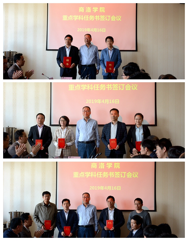 會議宣讀了校重點學科及學科梯隊成員名單。劉寶盈向重點建設學科化學學科,重點培育學科生物學、中國語言文學、地理學、數學學科分別授牌,向各層次學科梯隊成員代表頒發了聘書,并與各學科帶頭人或學科負責人簽訂了建設任務書。