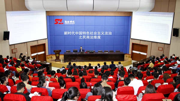 講座中,郭升選教授從全面依法治國是堅持發展中國特色社會主義的基本方略、新時代中國特色社會主義法治體系、新時代中國特色社會主義法治體系之民法、新時代中國特色社會主義法治體系之商法等幾個方面進行闡釋,并以西安奔馳車主哭訴維權等現實中的具體案例進行分析,引起同學們極大興趣,現場氣氛熱烈活躍。同學們紛紛表示從中學到了許多實用性的知識,獲益匪淺。