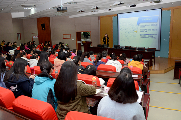 11月17日,應發展規劃與合作交流處邀請,美國北卡大學格林斯堡分校國際招生辦主任傅蓉來到我校,介紹北卡大學格林斯堡分校相關情況和招生政策,鼓勵我校學子赴美留學。我校百余名有意出國留學的學生聽取了報告。