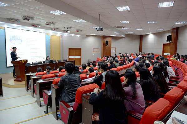 宣講會上,John Lee介紹了克萊蒙特大學的地理位置、環境、專業設置、招生需求以及就業前景。他表示,克萊蒙特大學接收研究生入學申請,研究生最低入學要求雅思6.0分、托福75分,即可申請直錄。克萊蒙特大學每年分春、夏、秋3季招生,春季招生為1月份,夏季招生為5月份,秋季招生為9月份。我校百余名出國留學意向的學生聽取了報告。