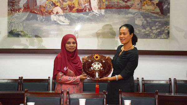 經濟管理學院副院長周小婷向Hazlina老師贈送了以商洛核桃為材質的工藝品——“吉慶有余”中國結,祝愿兩校之間的合作百尺竿頭,更進一步,祝愿兩校師生之間的友誼地久天長。