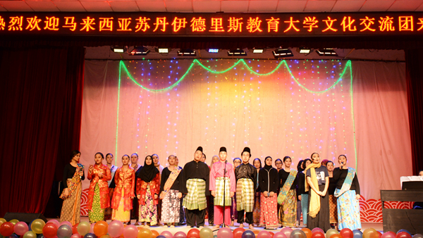 14日下午,我校和馬來西亞蘇丹伊德里斯教育大學學生聯袂演出了一臺精彩的文藝節目。其中我校學生表演的具有中華民族特色的漢服舞蹈《禮儀之邦》《青花瓷》、武術表演《武行我素》等節目獲得了來訪師生的贊賞。蘇丹伊德里斯教育大學師生也帶來了馬來西亞傳統舞蹈《sumazau》《joget》和歌曲大合唱,精彩的表演獲得了現場陣陣掌聲。