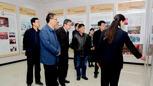 在龍治剛、范新會的陪同下,陳平社、曹慶年一行考察了我校校園環境,實地察看了學校特色展廳和重點實驗室。隨后,龍治剛主持召開座談會,雙方就應用型本科院校建設、本科教學工作合格評估等內容進行了座談交流。