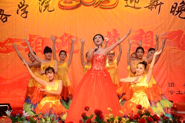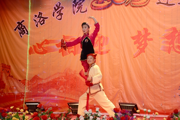 晚會(huì)以“心相迎 夢(mèng)想飛”為主題。在大合唱《游擊隊(duì)隊(duì)歌》和校歌《正道直行做棟梁》的動(dòng)人旋律唱中拉開帷幕。整場(chǎng)晚會(huì)形式多樣,現(xiàn)代與古典同臺(tái),聲樂與器樂相和,浪漫與詼諧相伴。歌舞、相聲、朗誦、魔術(shù)、樂器聯(lián)奏等精彩的節(jié)目為觀眾呈現(xiàn)了豐盛的視聽盛宴。為紀(jì)念中國(guó)人民抗戰(zhàn)暨世界反法西斯戰(zhàn)爭(zhēng)勝利70周年,由藝術(shù)學(xué)院劉威老師帶來(lái)的《紅歌聯(lián)唱》將整場(chǎng)晚會(huì)渲染出了紅色的氣息,激昂的歌聲與清靈的鋼琴悠揚(yáng)的笛聲相宜相合贏得了一陣陣贊美與掌聲。城鄉(xiāng)規(guī)劃與建筑工程學(xué)院學(xué)生帶來(lái)的相聲《地理圖》用毫不遜色于銀幕相聲的精彩表演給整個(gè)會(huì)場(chǎng)帶來(lái)了不息笑聲與不絕的掌聲。由商洛劇團(tuán)的演員帶來(lái)的商洛花鼓戲《夫妻觀燈》表現(xiàn)了商洛本地戲曲的魅力,也預(yù)示了我校戲曲學(xué)院的蓬勃發(fā)展。最終,在一首《共筑中國(guó)夢(mèng)》的師生歌伴舞中,整場(chǎng)晚會(huì)步入高潮,在陣陣掌聲中落下帷幕。