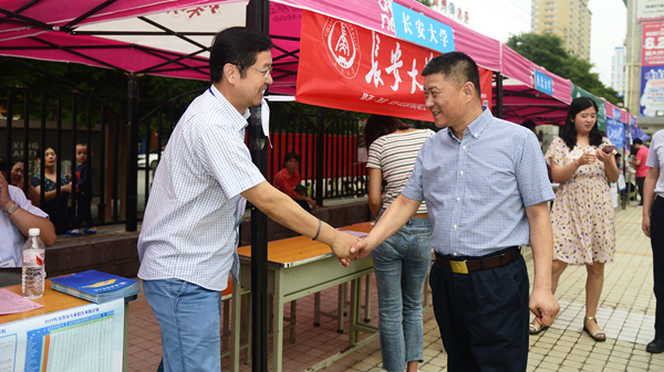 6月26日,我校舉辦了2019年校園開放日暨陜西高校招生咨詢會。我校與浙江大學、西安交通大學、西北工業大學、西北農林科技大學、西北大學、長安大學、西安郵電大學、西交利物浦大學等30余所省內外高?,F場為廣大高考考生及家長提供招考咨詢服務。校長范新會到現場看望慰問各校工作人員并與考生及家長進行了親切交談。