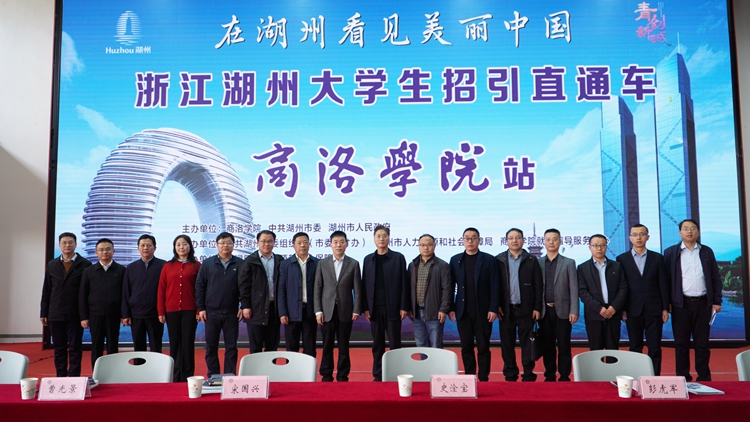 史淦寶、我校黨委副書記彭虎軍出席推介會并現場指導招聘活動。史淦寶對我校就業工作開展情況及獲得的成績表示贊賞。他從山水清遠、人文薈萃、交通便捷、安定和諧、產業興旺等5個方面推介了湖州市情,重點介紹了湖州市近年來大力發展“科創”“數創”“商創”“鄉創”“文創”“云創”六支青創隊伍情況,并從安家補貼、購房補貼、租房(生活)補貼、創業補貼、創業擔保貸款及貼息、實習補貼、應聘補貼、就業補貼等8個方面對湖州市人才招引政策進行了詳細的解說。他表示,湖州大學生創新創業扶持政策和謀劃打造“青創新城”,充分彰顯了市委、市政府抓好人才工作的堅強決心和堅定信心,展示了湖州尊才愛才的真心誠意,必將給來湖大學生提供大有可為、大有作為的廣闊空間。他代表湖州市人社局誠摯邀請廣大青年學子來湖創新創業,希望廣大畢業生集聚湖州、夢創湖州、扎根湖州,在湖州闖出一番新天地,“逐夢新征程”“在湖州看見美麗中國,來湖州成就美麗人生”!