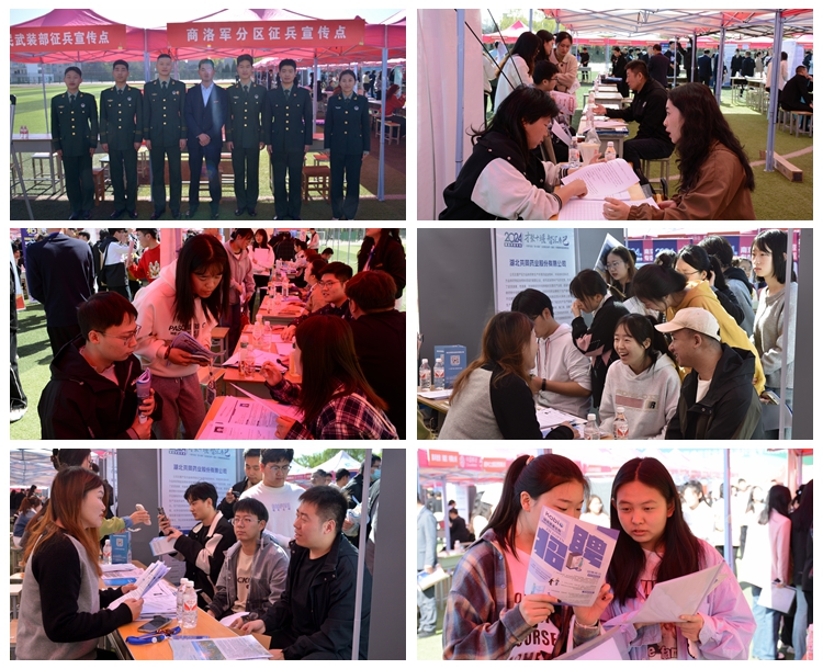 為保障招聘會順利舉辦,學校依托貓頭英云人才市場,采取線上報名、線下預約相結合的方式積極與用人單位聯系對接,邀請深圳慧通商務有限公司、陜西國力信達康養產業集團有限公司、西安隆基樂葉光伏科技有限公司等業內知名企業、上市公司,以及陜西防務技工學校、延安行知中學、鎮安慧源學校、房縣行知實驗學校等省內外師范教育類用人單位來校參會。西安市人社系統、南京市人社系統、十堰市人社系統、商洛市人社系統共組織108家優質用人單位來校參會。本次招聘會共有222家用人單位參會,為我校畢業生提供電子電信、電氣工程、教育培訓、外語外貿、文化旅游、金融會計、電子商務、高端裝備制造、土木土建、化學化工、生物醫藥、醫療衛生等多個行業領域的有效崗位達7500多個,招聘專業涉及我校所有專業,共吸引我校2615名2024屆畢業生以及2800多名兄弟院校和商洛籍未就業畢業生參會。