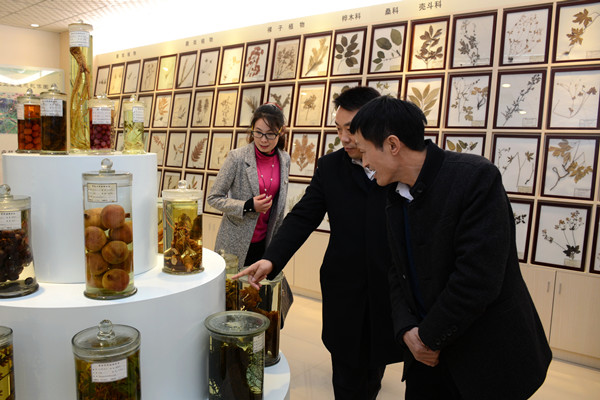 在彭虎軍的陪同下,陳義德、朱先鵬、周麗娜一行參觀了我校商洛紅色文化資料館、商洛文化暨賈平凹研究中心、陜西省尾礦資源綜合利用重點(diǎn)實(shí)驗(yàn)室、學(xué)校辦學(xué)成就展廳、秦嶺植物標(biāo)本室及生物醫(yī)藥與食品工程學(xué)院實(shí)驗(yàn)室等處。
