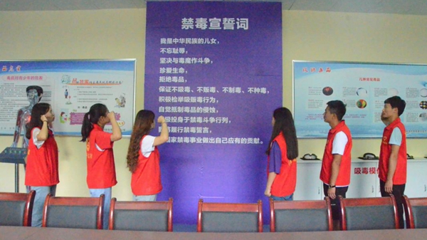 開展禁毒防艾知識宣講社會實踐活動。7月12日至13日,由我校青年志愿者組成的實踐團先后在商洛市商州區和洛南縣參觀禁毒基地,開展禁毒防艾宣講活動。通過觀看毒品實物模型、禁毒宣傳教育影片等方式,了解吸食毒品對個人和社會的危害。志愿者們在廣場懸掛宣傳條幅、張貼禁毒倡議書、分發知識手冊,號召大家遠離毒品,遏制艾滋,以實際行動建設幸福商洛。