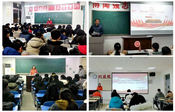 各學院輔導員會前集體學習宣講材料并制定了統一的宣講方案,在主題班會過程中,圍繞黨的十九屆四中全會公報和《中共中央關于堅持和完善中國特色社會主義制度推進國家治理體系和治理能力現代化若干重大問題的決定》,結合學生實際,全面講述了十九屆四中全會的重要意義、中國特色社會主義制度的顯著優勢,以及堅持和完善中國特色社會主義制度、推進國家治理體系和治理能力現代化的總體要求、總體目標和13個方面的重點任務。