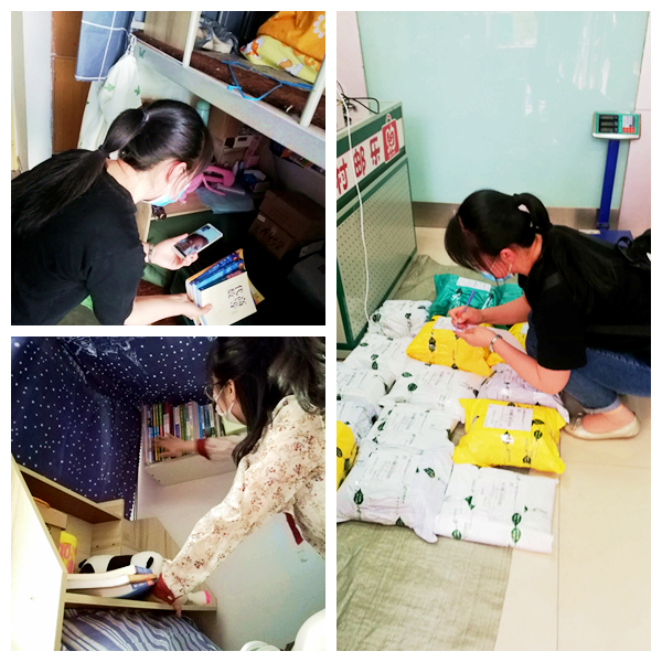 “老師,單位通知我盡快簽約,可我的三方還在宿舍,能不能幫我取一下?”“導員,上學期高數(1)好不容易沒有掛科,現在《高數(2)》快結課了,要是再沒有書,這學期肯定掛了,能不能幫幫我!”面對學生的要求,數計學院學工人員主動變身校園“快遞員”,“云”接單后在學生宿舍進行直播“帶貨”,小到一張紙,大到筆記本電腦都在他們的下單范圍?!澳憧纯词遣皇沁@本書?英語書要不要?”“你的柜子鑰匙在哪里?是在床墊靠門的一邊下面壓著嗎?”“你要拿哪幾件衣服?是這件嗎?還有那件,需要嗎?”“宿舍陽臺的幾盆植物是誰的呀,已經干癟了,我給幫忙澆點水?!闭业綎|西后,輔導員們會逐一貼上標簽仔細核對,以免物品混淆,到快遞寄送點后也會一直監督物品打包、物流信息填寫,還會對個別建檔立卡學生提供包郵服務。