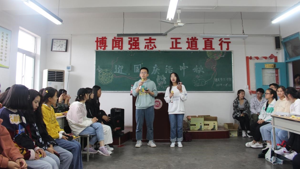 人文學院以“融入大集體 適應新生活”為主題,組織全體學生干部與2020級在校新生開展了“迎雙節”聯歡會。會上,新老生代表進行自我介紹、禮物互換、才藝表演,師生互動開展了詩詞大比拼、成語接龍、數字炸彈小游戲,并共同觀看了抗擊新冠肺炎疫情專題片《在一起》。