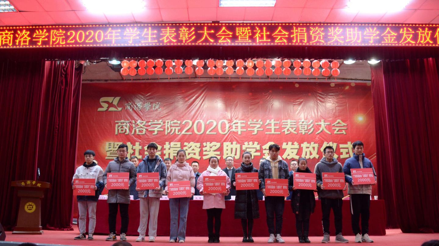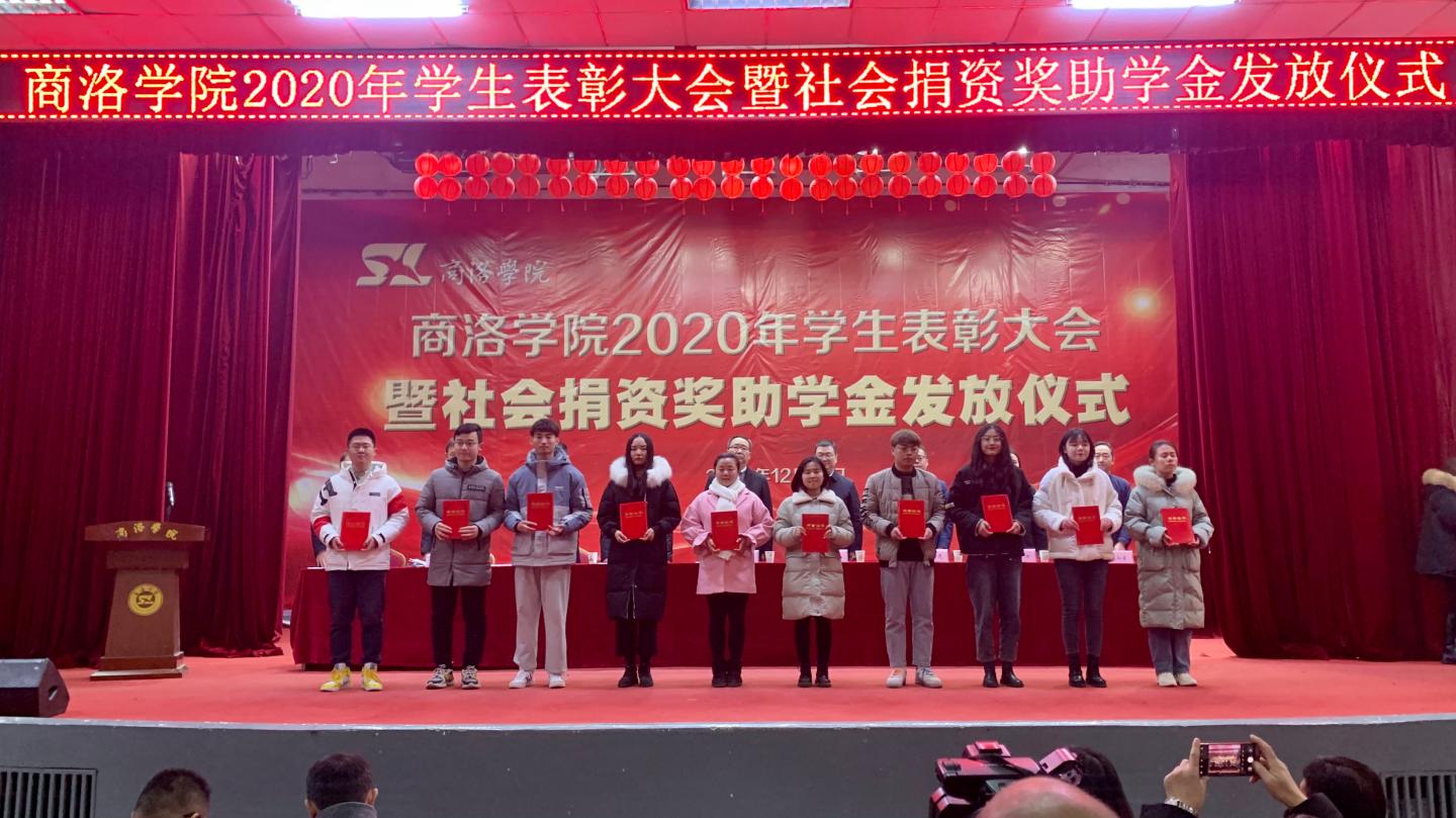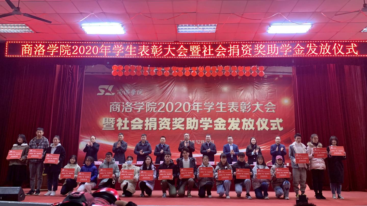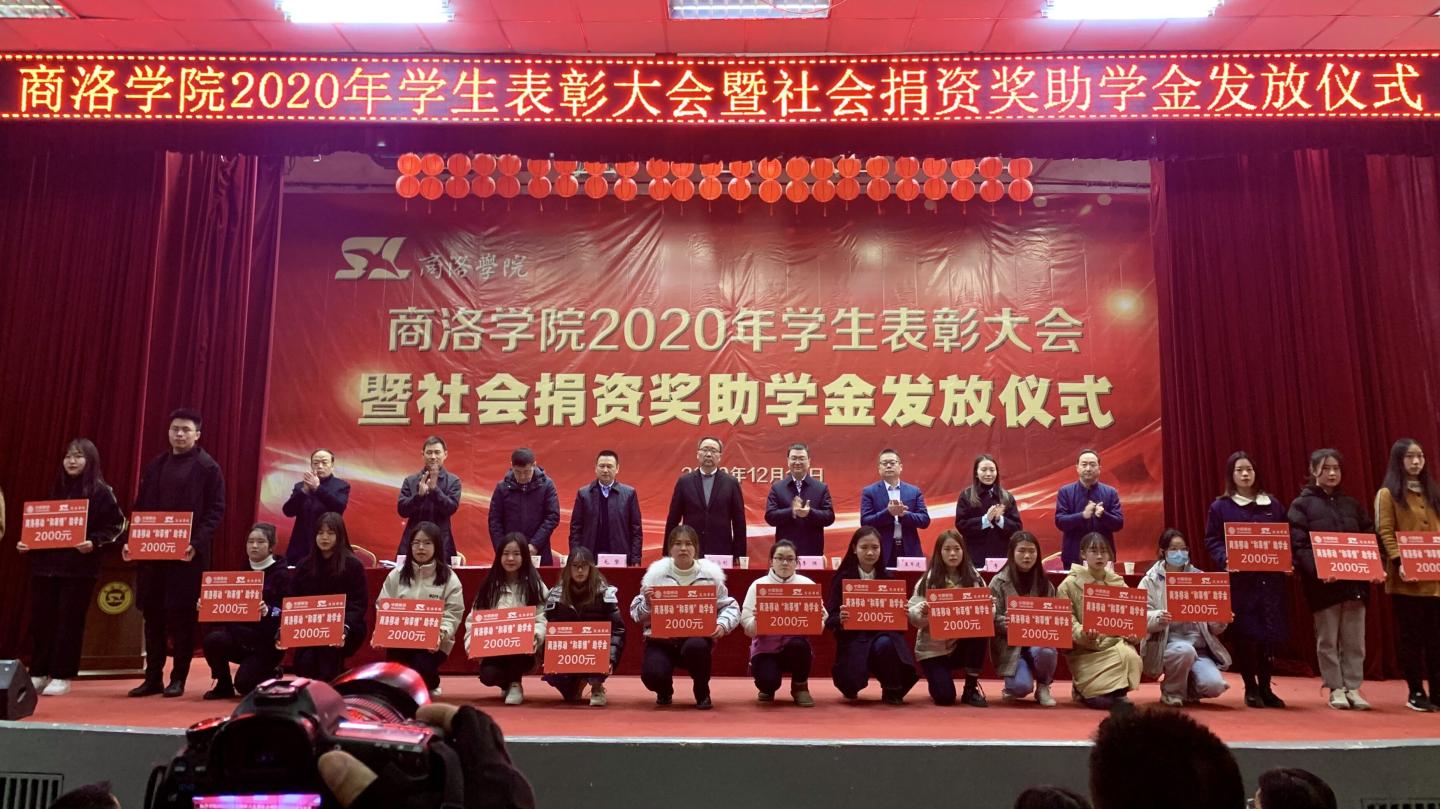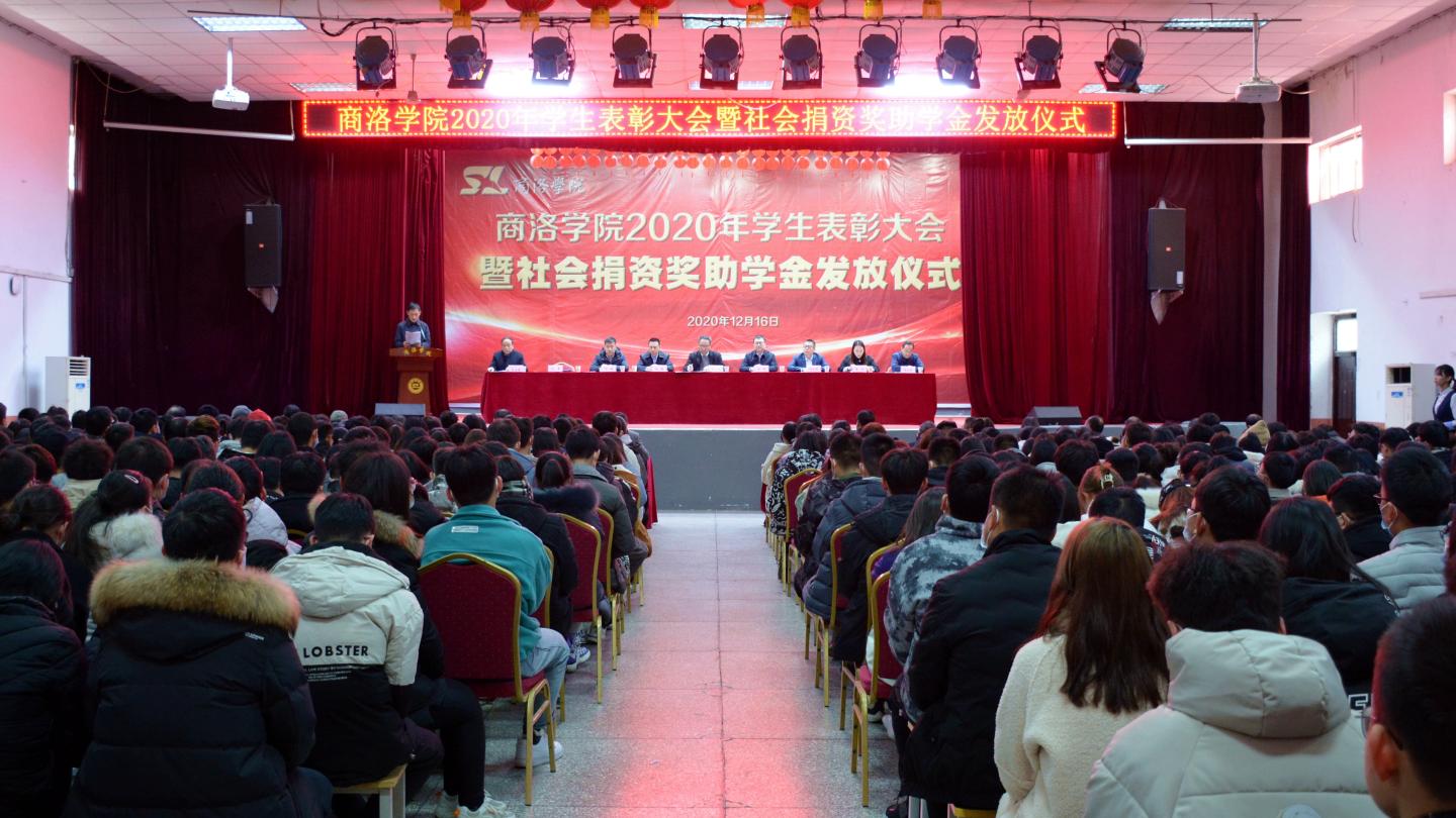 12月16日,我校2020年學生表彰大會暨社會捐資獎助學金發放儀式在大學生活動中心隆重舉行。校黨委書記龍治剛、黨委副書記劉勇,國網商洛供電公司總經理李強,中國聯通商洛分公司副總經理毛繁,中國電信商洛分公司副總經理王軍建,中國移動商洛分公司黨委委員、副總經理許鵬,貴州茅臺陜西省區域負責人李方,校黨委委員、黨委辦公室·院長辦公室主任、校友總會辦公室負責人張向東等出席大會。大會由學生處處長石啟英主持。