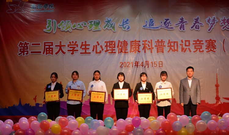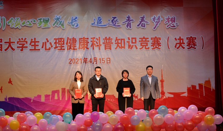 4月15日下午,我校第二屆大學生心理健康科普知識競賽在大學生活動中心舉辦決賽。校黨委副書記彭虎軍蒞臨現場并為獲獎人員頒獎。學生處負責人,各二級學院黨總支書記、學工辦主任、全體輔導員以及學生代表共400余人觀看了比賽。
