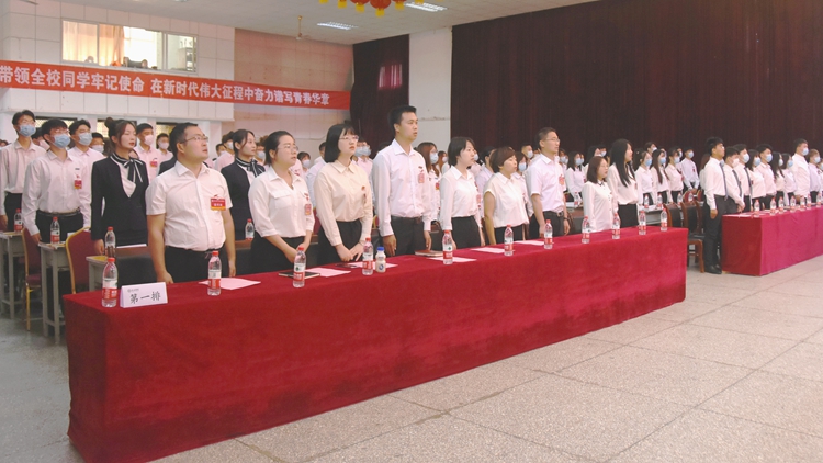 彭虎軍代表學校黨委對進一步做好青年工作提出三點要求:一要高舉習近平新時代中國特色社會主義思想偉大旗幟,深入學習貫徹習近平總書記關于青年工作的重要論述,牢記習近平總書記對青年學子的殷殷囑托,帶領廣大青年學黨史、知黨恩、跟黨走,堅定理想信念,立志成為中國特色社會主義事業(yè)的合格建設者和接班人。二要建強學生組織,積極履職盡責,充分發(fā)揮學生組織的橋梁紐帶作用和學生干部的模范帶頭作用,服務學校中心工作,團結(jié)帶領廣大青年為“一流學院”建設貢獻青春力量。三要加強學生干部隊伍建設,進一步堅定理想信念,培育高尚品格,練就過硬本領,勇于創(chuàng)新創(chuàng)造,矢志艱苦奮斗,竭誠為廣大學生辦實事、辦好事、解難事,推動我校青年工作開創(chuàng)新局面。
