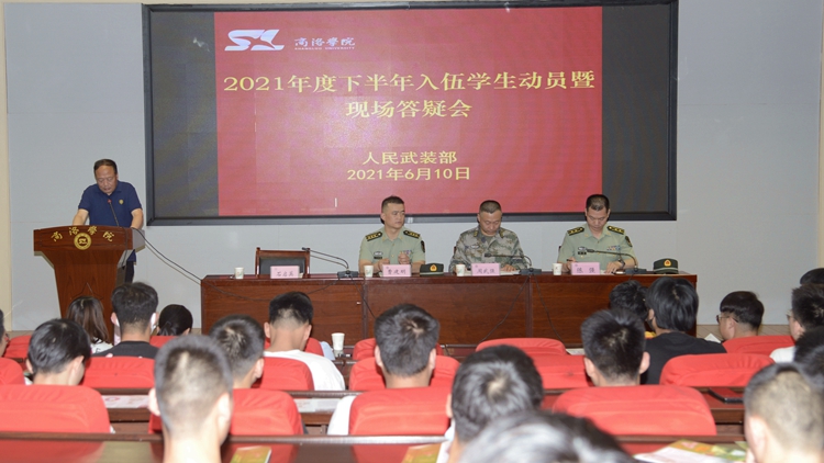 6月10日,我校舉辦2021年度下半年入伍學(xué)生動員暨現(xiàn)場答疑會,商洛軍分區(qū)動員處處長周武強(qiáng)、商州區(qū)武裝部部長曹建明、商州區(qū)武裝部副部長陳強(qiáng)中校出席會議。我校各二級學(xué)院學(xué)工辦主任、報名入伍學(xué)生160余人參加會議。會議由學(xué)生處處長石啟英主持。