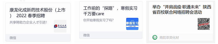 為深入貫徹落實黨中央、國務(wù)院“穩(wěn)就業(yè)”“保就業(yè)”決策部署,及2022屆全國普通高校畢業(yè)生就業(yè)創(chuàng)業(yè)工作網(wǎng)絡(luò)視頻會議精神,1月份以來,學(xué)校緊抓寒假關(guān)鍵期,開展了系列形式多樣、內(nèi)容豐富的“寒假送暖崗,就業(yè)不斷線”線上系列活動,進(jìn)一步激發(fā)學(xué)生就業(yè)意識,提升學(xué)生就業(yè)能力,為學(xué)生提供足額崗位,促進(jìn)我校2022屆畢業(yè)生高質(zhì)量就業(yè)。