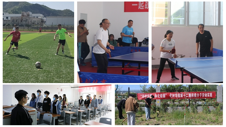 化材學院組織開展了“與心靈相約,與健康同行”誦讀活動、“三尺講臺,演繹自我”授課大賽等教學活動,聯合后勤保障處開展了“守護文明,凈化校園”“五一”勞動實踐活動,聯合學校工會舉辦“一起戰疫,一‘乒’到底”主題師生乒乓球賽以及“桃李芬芳 情滿丹江”——“五一”師生足球友誼賽。校領導劉勇、劉寶盈、王新軍親自參賽,與學子們捉對比拼,既增進了師生感情,也展現我校學生拼搏進取的精神風貌。